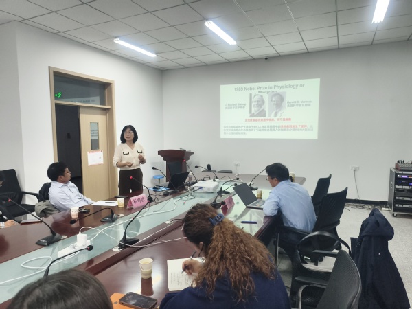 就学科发展和科研方向规划进行了深度交流,并先后为师生做3场学术前沿讲座。冯新华教授在题为“Mechanism of TGF-β Resistance in Cancer”的报告中介绍了TGF-β信号与癌症的关系以及针对性的癌症诊断、预防和治疗策略。逄秀凤教授以“KRAS突变肿瘤的分子干预研究”为题讨论了KRAS突变肿瘤及其小分子抑制剂的开发和作用机制。赵琼研究员以“内膜系统与细胞器调控陆生植物细胞形态功能多样性演化的机制研究”为主题,介绍了植物细胞内膜系统细胞器发生及其在植物细胞形态功能演化中的作用和机制。