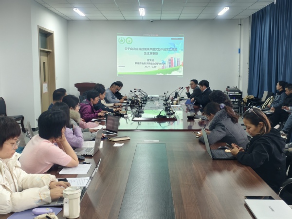 植物保护研究所所长、自治区“天山英才”领军人才获得者郭文超研究员、自治区标准化研究院农业与食品标准化研究所副所长李楠、方圆专利资深代理师王悦面向全校开展线上线下同步专题讲座。郭文超介绍了自治区科技成果奖项类型、申报流程和评审过程,并分享了他对科技成果申报奖励工作的深刻见解。李楠讲解了地方标准立项评估的必要性、流程、主要内容、评估指标体系以及常见问题。王悦就专利申请流程、技术交底书撰写等专利申报知识进行了培训。