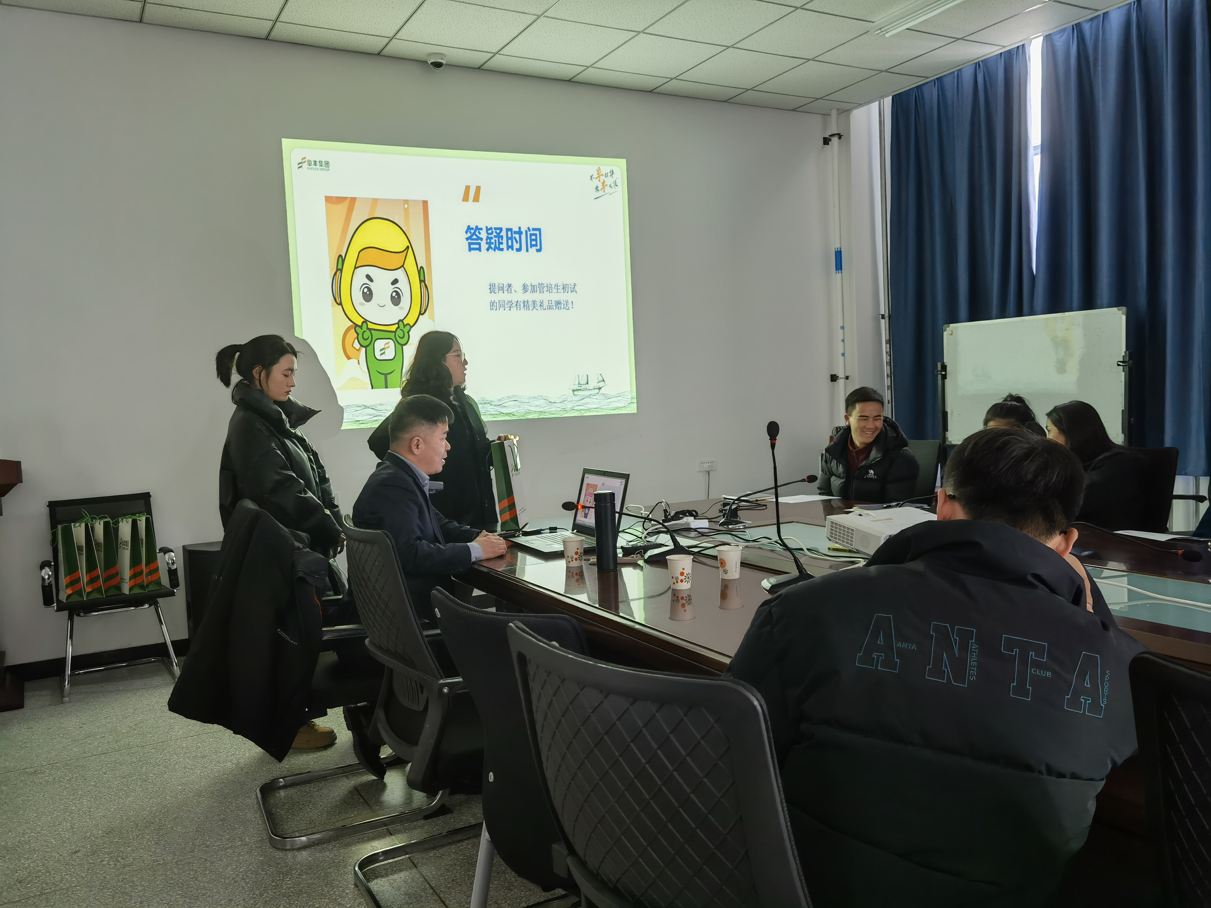 新疆阜丰生物科技有限公司首先对本公司的工作模式,招聘管培生的培养方案,发展平台及福利等进行详细的宣讲,并开通了线上简历投送模式,方便未到现场或其他有意向的同学进行简历投递,方便就业咨询。宣讲结束后东东电竞