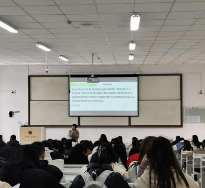 针对考核方式,张瑞教授对参会同学进行了重点讲解与交流。在会上,张瑞教授将本次考核的笔试与面试的内容、形式等一一进行了剖析,她提出为了进一步提升专业人才的培养,我校本次考核笔试与面试均参照国家中小学教师资格考试进行,教育综合知识考试(笔试)由教育类研究生和师范生教育教学能力测试中心统一组织并实施。对于同学们提出在备考笔试的过程中可能存在的困难,张瑞教授也进行了耐心解惑,分析了针对生物学科可能出现的一些考点。在对笔试进行充分解读后,张瑞教授针对面试做了一个详细的介绍,包括面试的组织和实施单位,具体内容和流程。她特别强调了本次面试考核主要是考查申请人的教师基本素养、教学设计、教学实施及教学评价水平等,并且本次面试主要采取了现场随机抽取题目的形式,面试专家成员由校内外教师教育专家及一线中小学教师组成,具有一定的难度。对此,她也详细的给予了同学们一些面试的建议与注意事项,如教案的书写时间与篇幅、四维教学目标的设计、过程活动设计、板书设计等。