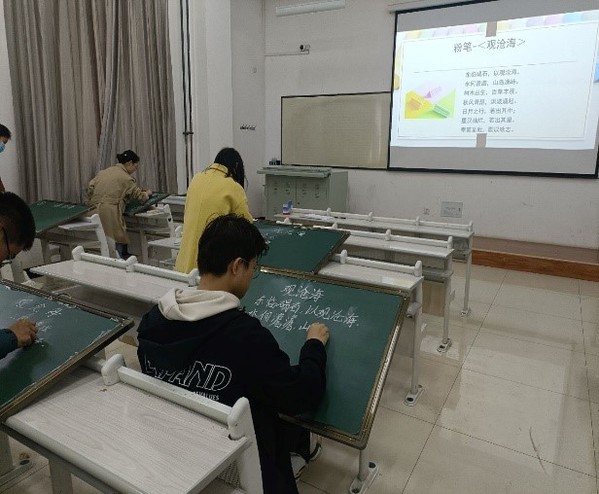 于4月19日开展了生物科学专业“三笔字”比赛。三笔字包括钢笔字,毛笔字,粉笔字。参赛选手通过现场书写展示,评委现场打分的方式来开展比赛。