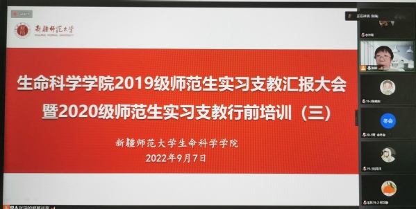 2019级、2022级生物科学专业7个班的全体同学、部分远程指导老师及2020级班主任参加了此次大会。生物科学系主任张瑞老师主持会议。