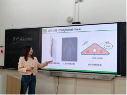 徐叶老师讲授了《扁形动物门》,徐老师带领学生回顾上节课学习的腔肠动物,比较其主要特征,引导学生思考不同动物门类之间的异同,自然过渡到新课的学习。徐老师语言生动形象,注重形态学细节的展示,结合图片、标本和实例,帮助学生直观理解扁形动物的结构与功能特点。
