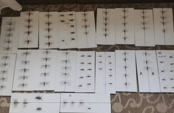 本次外野工作进行之前,扈鸿霞老师及团队老师就野外普查安全知识、昆虫种群调查方法、昆虫标本采集与制作等对团队成员进行了多次培训。在和静县正式外野调查之前,扈鸿霞老师先与当地林草局的工作人员利用草原普查APP,共同制定路线,确定普查计划。在野外调查过程中,扈鸿霞老师全程亲自指导普查团队成员对草原普查APP的操作,如登录、查看路线、使用APP进行路线导航、采集数据、创建标准地等。同时扈鸿霞老师还讲解了昆虫种群调查的样线法、样方法等基础知识。白天普查结束后,晚上老师会指导大家做蝗虫等各类害虫标本,讲解如何通过特征确定具体是哪一种昆虫,受益匪浅,对后续的普查工作非常有帮助。本次调查过程中采集到的主要是蝗虫,包括牧草蝗、白边雏蝗、黑腿星翅蝗、束颈蝗和西伯利亚蝗等,害虫普查数据也是之后林草局掌握当地草原虫害基本情况和上报虫害发生情况的重要数据支撑。